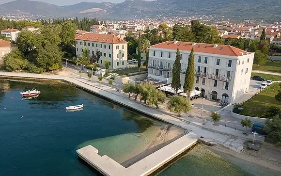 Vi bor precis vid vattnet på Hotel Stacija med en vacker utsikt över Adriatiska havet. Från hotellet kan vi känna doften av havet och höra vågorna klucka mot kajen.